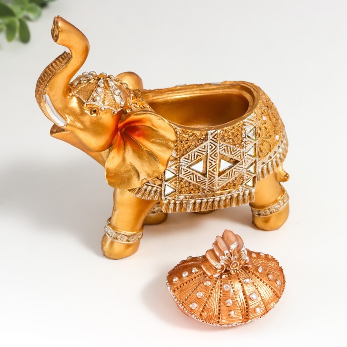 Фигурка-шкатулка для украшений «Золотой слон в зеркальной попоне», полистоун, 15×13.7×6.5 см