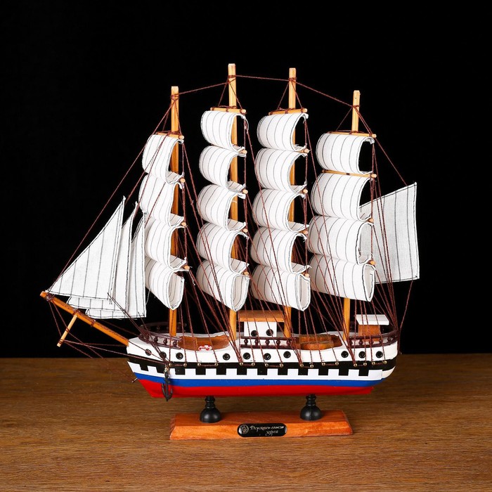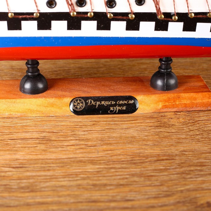 Корабль сувенирный малый "Фараон", борты чёрные, каюты, 3 мачты, белые паруса в полоску