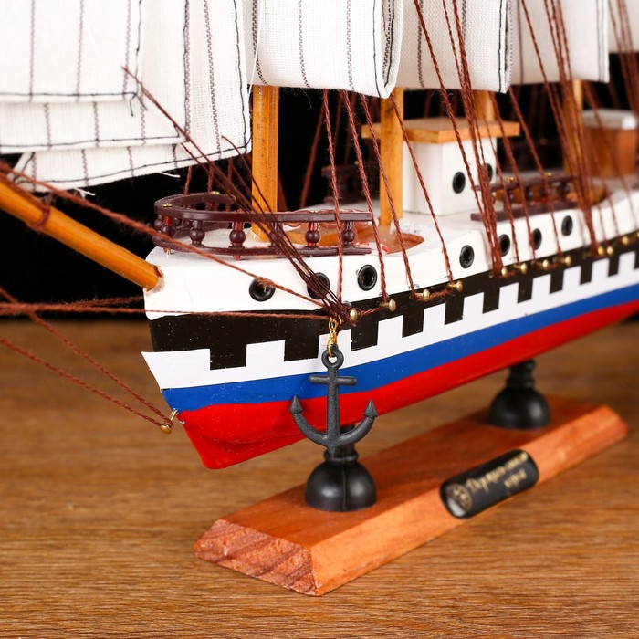 Корабль сувенирный малый «Дельфин», борта синие с белой полосой, паруса белые, 3 × 10 × 10 см