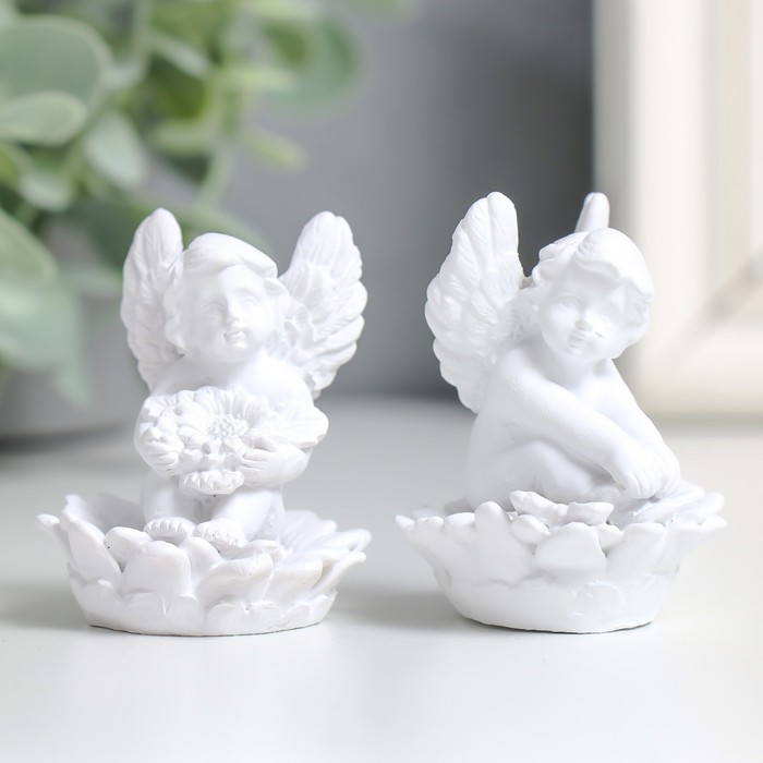 Сувенир полистоун "Белоснежный ангел в платье с цветами" МИКС 5,2х3,3х3 см