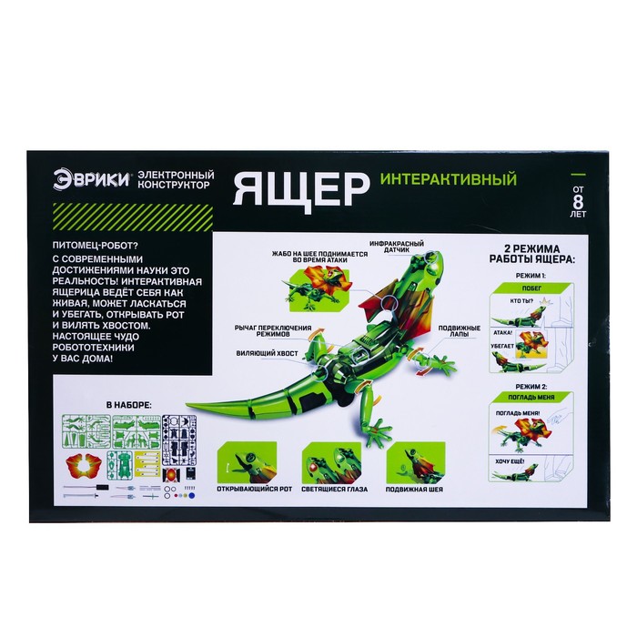 Всегда мечтали о хищной рептилии дома, но никогда не могли решиться завести её? Теперь у вас появилась уникальная возможность собрать свою собственную интерактивную ящерку серии «Эврики: Прогрессивные технологии».