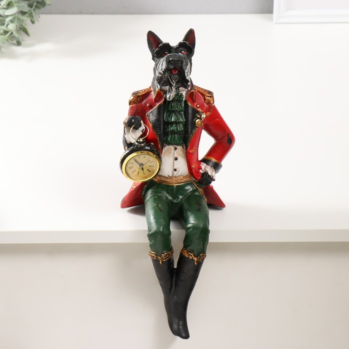 Сувенир полистоун с часами "Терьер в красном камзоле" сидит 16,5х14,5х36,5 см
