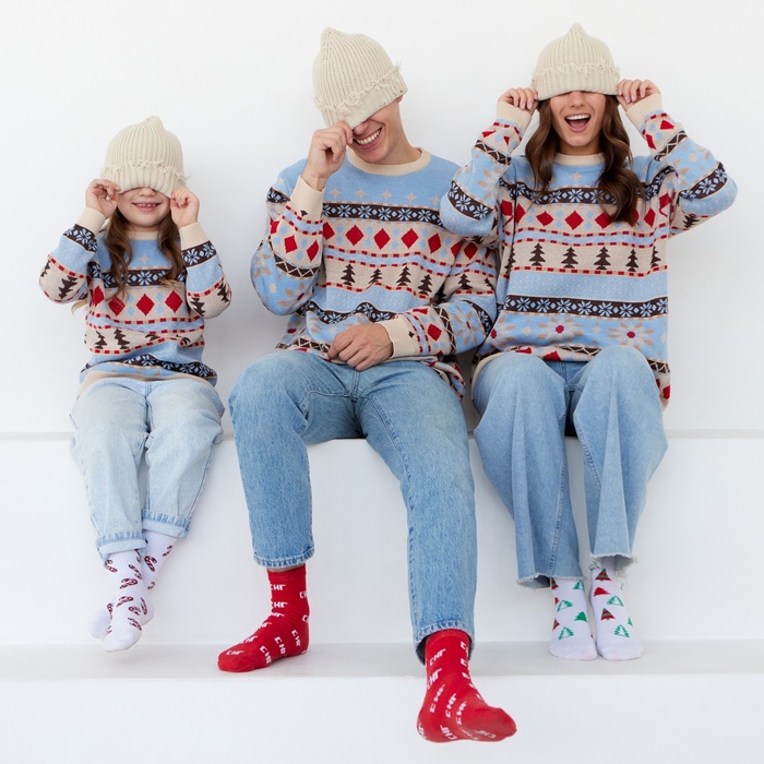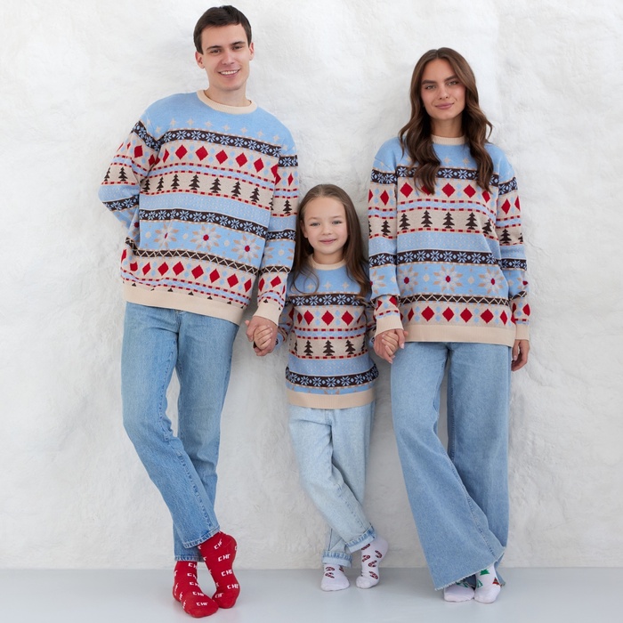 Джемпер вязаный новогодний детский KAFTAN Scandinavia размер 36 (134-140 см), цвет голубой