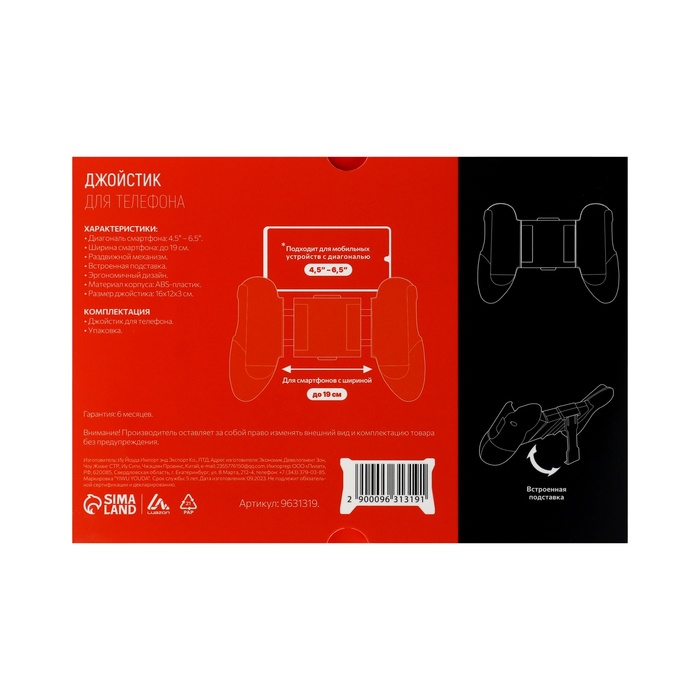 Джойстик для телефона Luazon, ширина до 19 см, черный