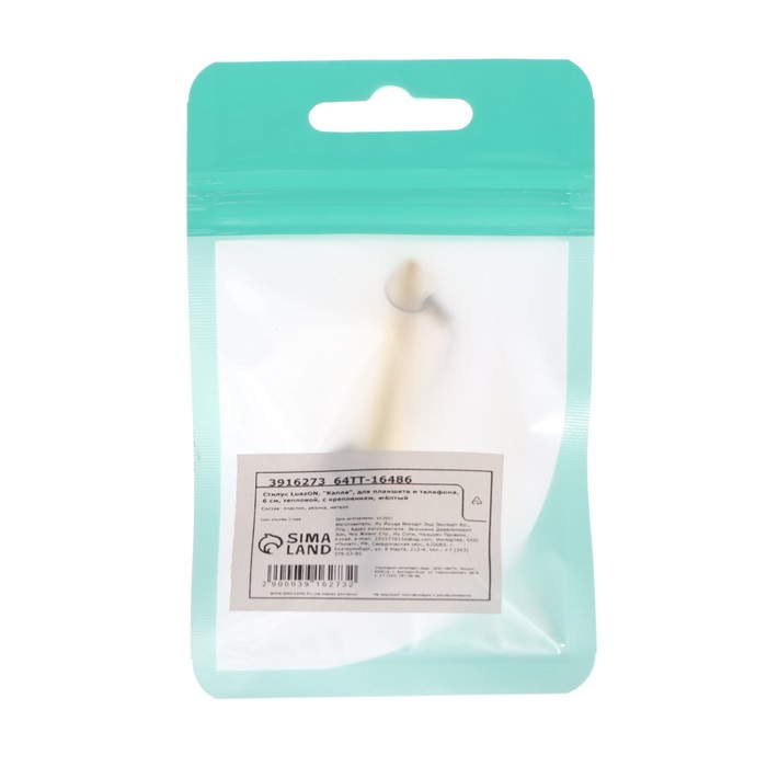 Стилус LuazON, "Капля", для планшета и телефона, 6 см, тепловой, с креплением, жёлтый