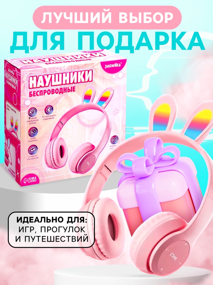 Наушники беспроводные «Зайчик», звуковые и световые эффекты, складные, цвет розовый