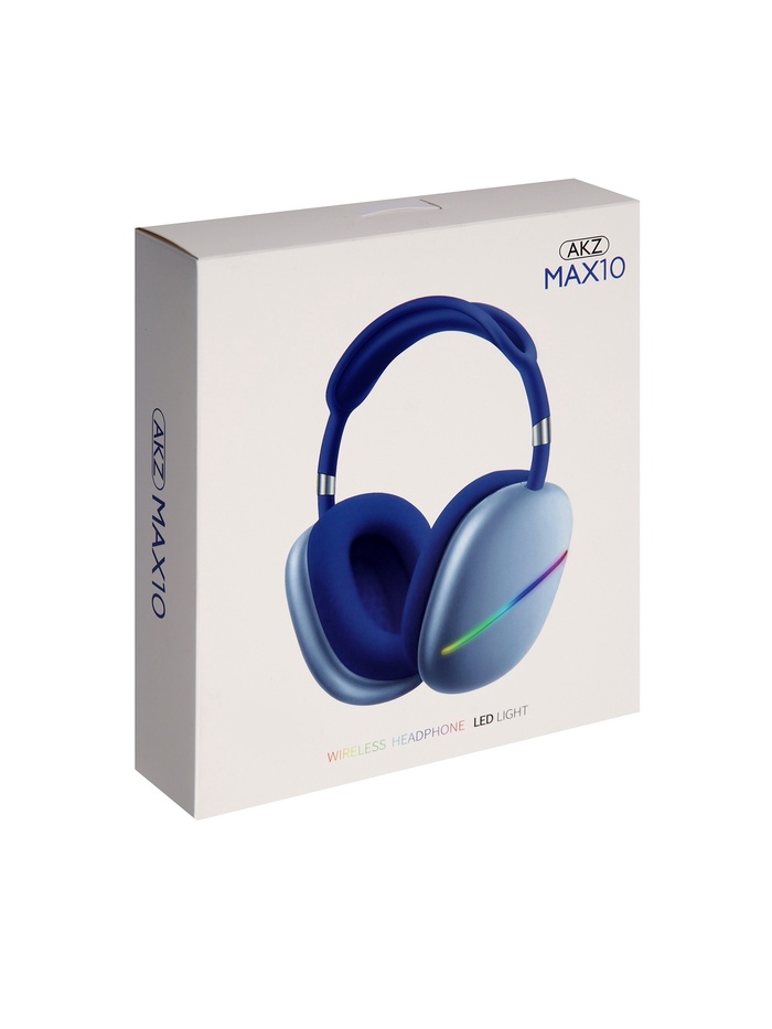 Наушники AKZ MAX10, беспроводные, полноразмерные, микрофон, подсветка, синие