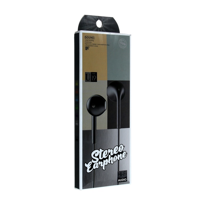 Наушники U19, проводные, вкладыши, 1 м, Jack 3.5 мм, чёрные