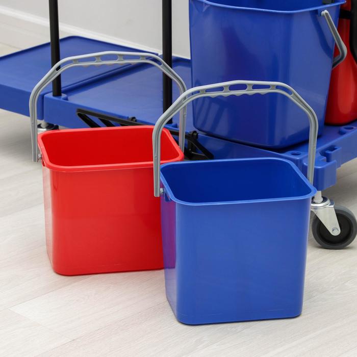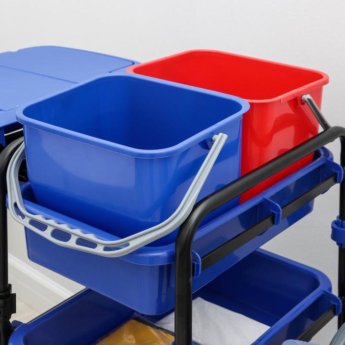 Тележка для уборки с отжимом и ведром, многофункциональная, 4 лотка, цвет синий