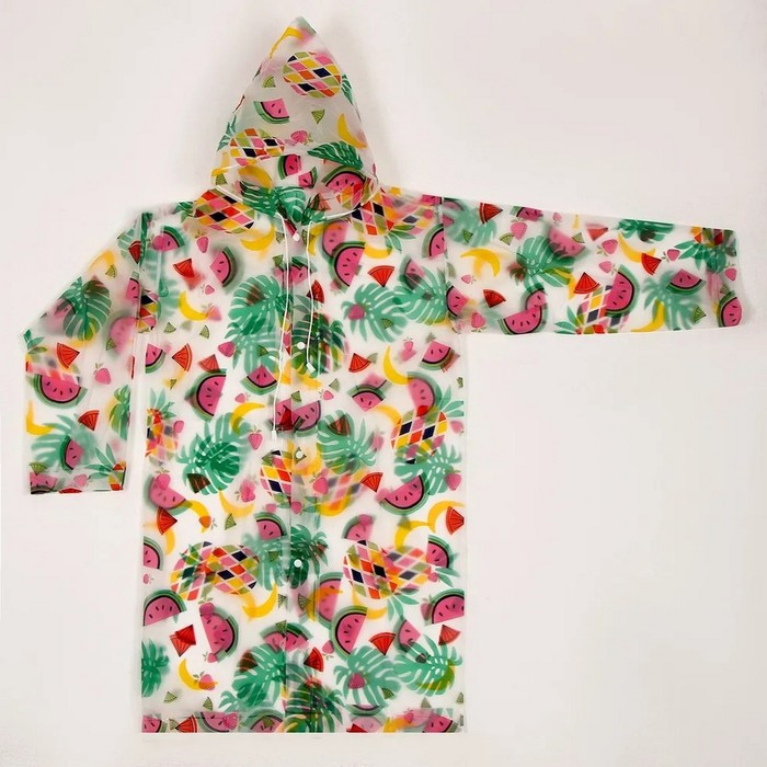 <h3>Особенности дождевика</h3>- Застёгивается на кнопки, есть капюшон.