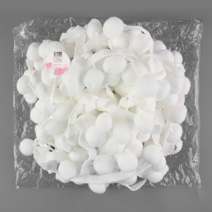 Тесьма декоративная с помпонами, 35±5 мм, 9.1±0.5 м, белая