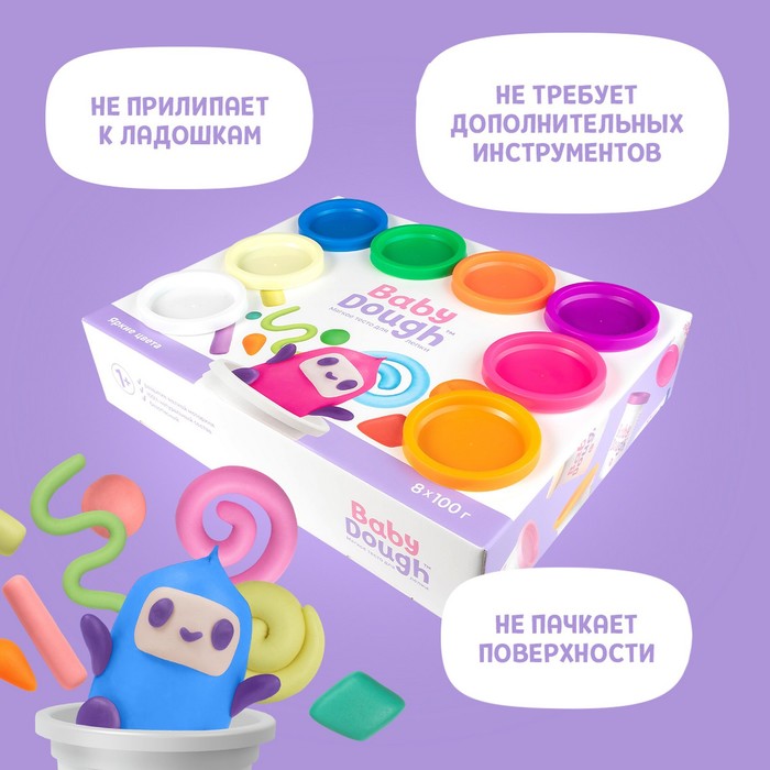 Тесто для лепки BabyDough, набор 8 цветов, яркие
