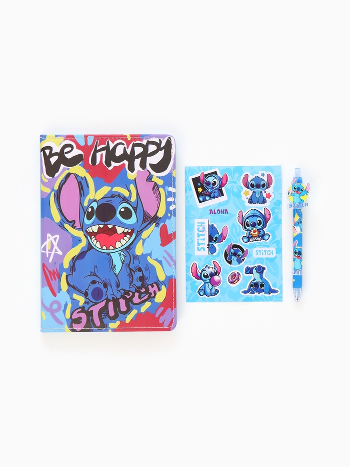 Подарочный набор: блокнот А6, 65 л, ручка и стикеры-наклейки, Стич