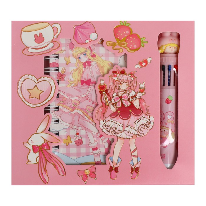 Записная книжка в подарочной коробке А6, 50 листов, линия,+ручка шариковая 10-цв, МИКС Аниме