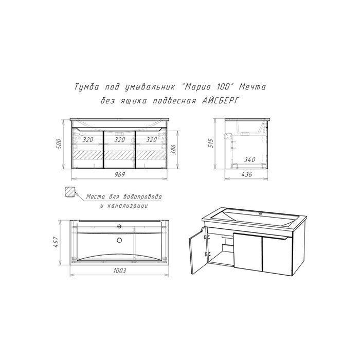 Тумба подвесная под умывальник "Maria 100" Мечта без ящика от бренда "Айсберг" станет прекрасным дополнением для ванной комнаты.