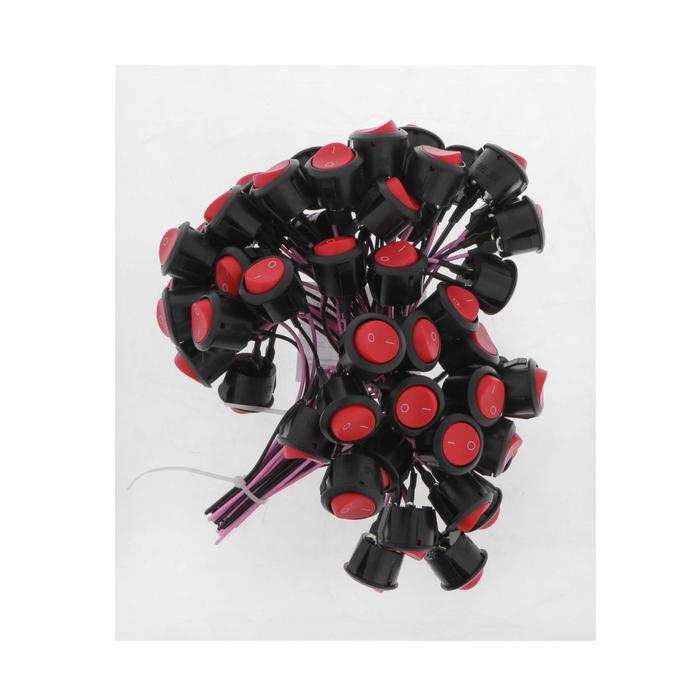 Выключатель клавишный с фиксацией, d=2 см, провод 10 см, красный