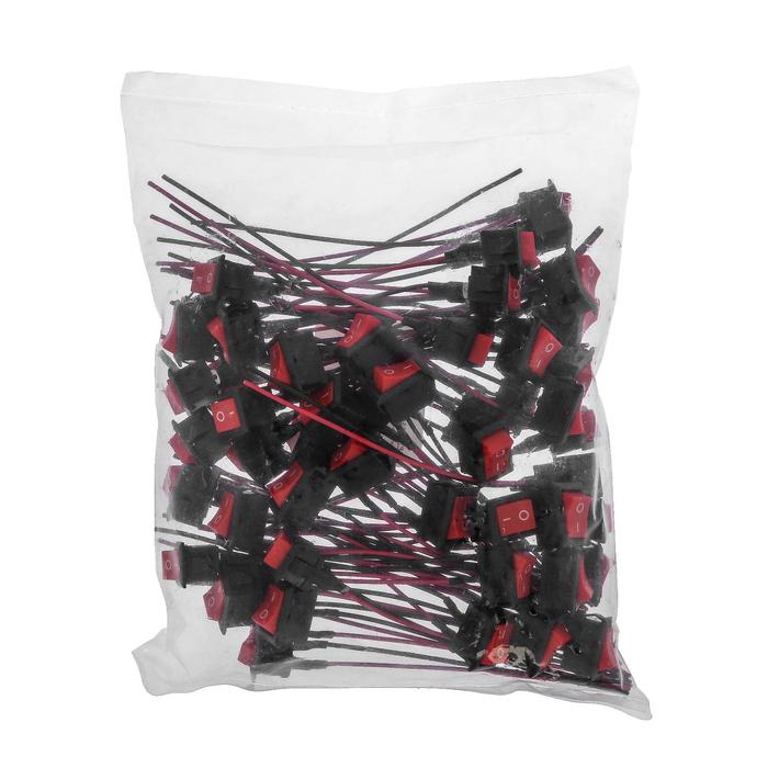 Выключатель клавишный с фиксацией, провод 10 см, красный