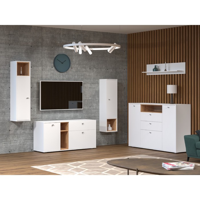 Тумба под ТВ Бэль 10.91, 1314х430х662, Белый премиум/Дуб золотой крафт