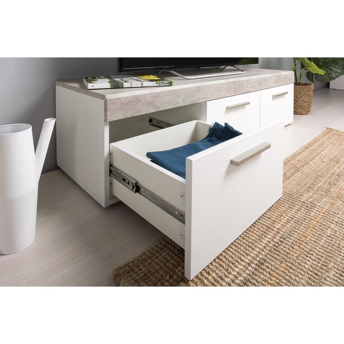 Тумба под ТВ Петра 13.281, 1384х406х366, цвет белый шагрень / милк софт МДФ