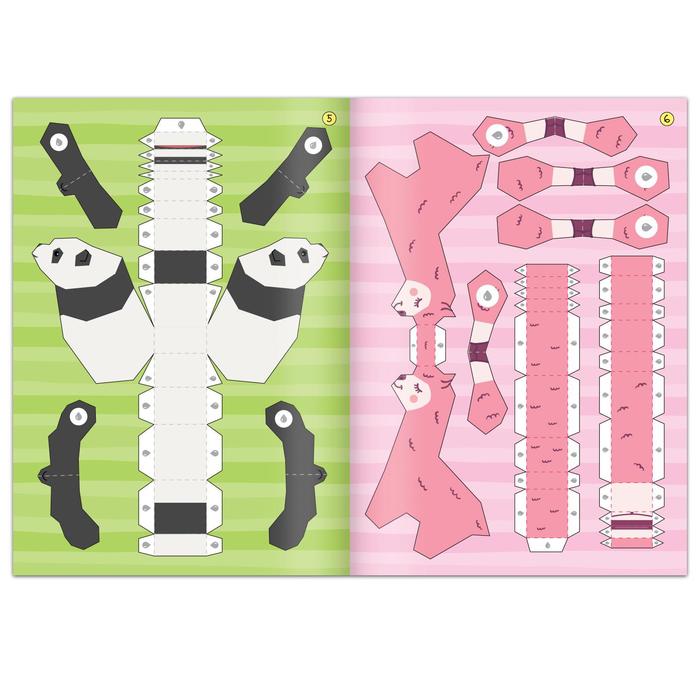 Внутри книги вы найдёте 8 заготовок для создания фигурок животных. Нужно просто вырезать детали и склеить между собой.