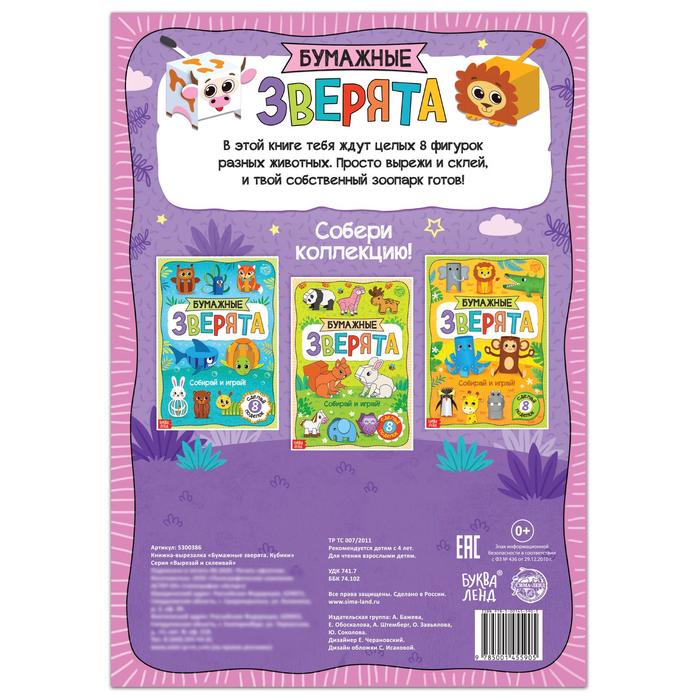 Книжка- вырезалка «Бумажные зверята. Кубики», 20 стр., формат А4