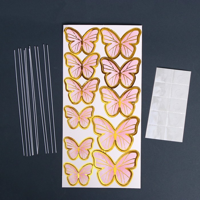 Набор для украшения торта «Бабочки» 10 шт., цвет розовый
