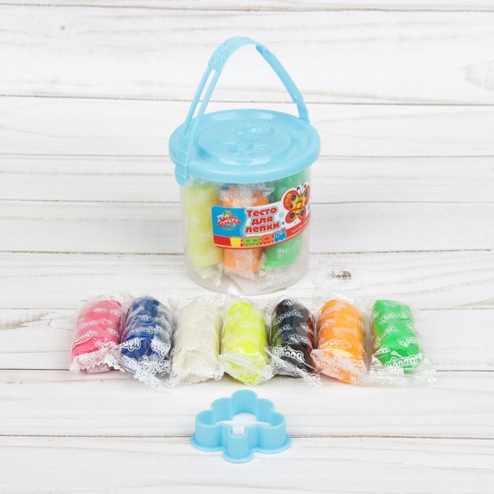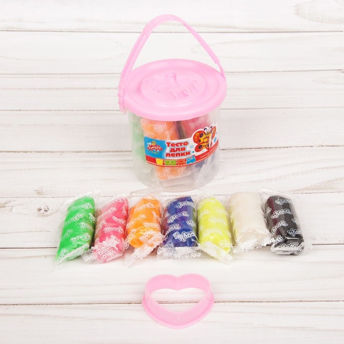 Тесто для лепки 7 цветов, 105 г + 1 формочка + крышка-формочка, МИКС