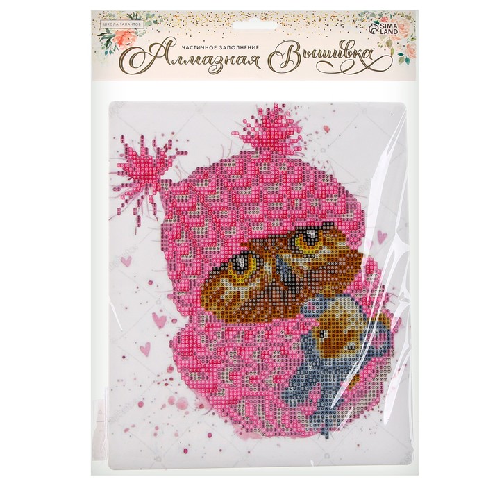 Алмазная вышивка с частичным заполнением «Сова в шапочке», с подставкой