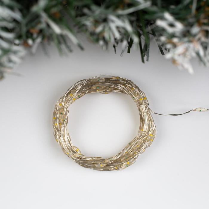 Гирлянда «Нить» 5 м роса, IP20, медная нить, 50 LED, свечение тёплое белое, 2 режима, AAх3