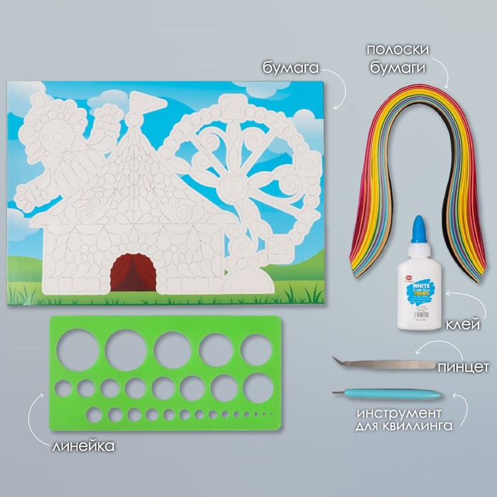 Набор для квиллинга 170 полосок с инструментами "Клоун в цирке" 25х33,7 см
