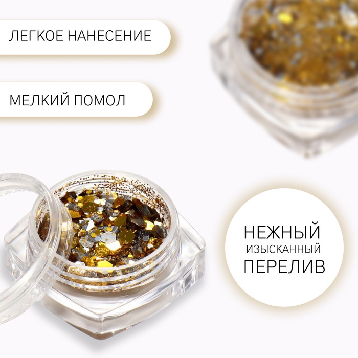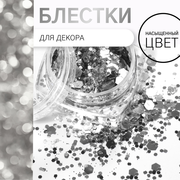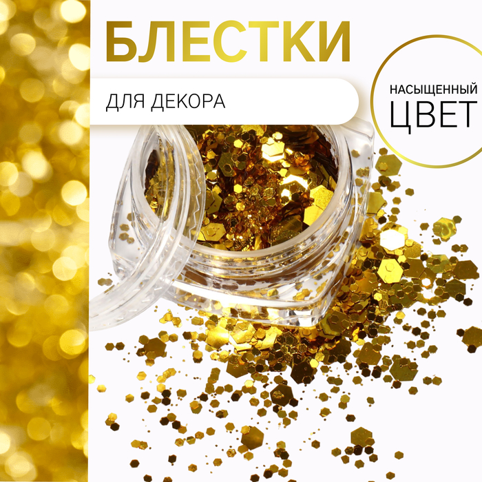 Блёстки для декора, крупные/мелкие, цвет серебристый/золотистый