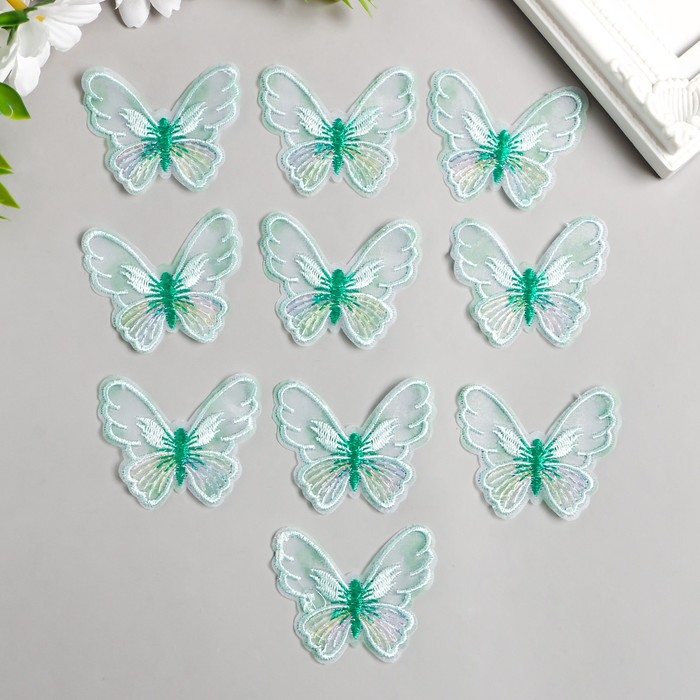 Декор для творчества текстиль вышивка "Бабочка зелёная" 4,7х5,5 см