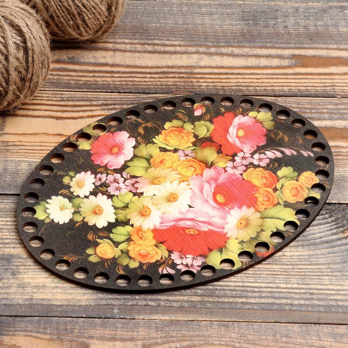 Заготовка для вязания "Жостовская роспись №1", донышко фанера 3 мм, 20 см, d=9мм