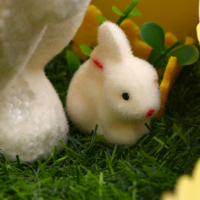 Сувенир пасхальный "Кролик и два цыплёнка на лужайке с цветами" 14х14х10,5 см