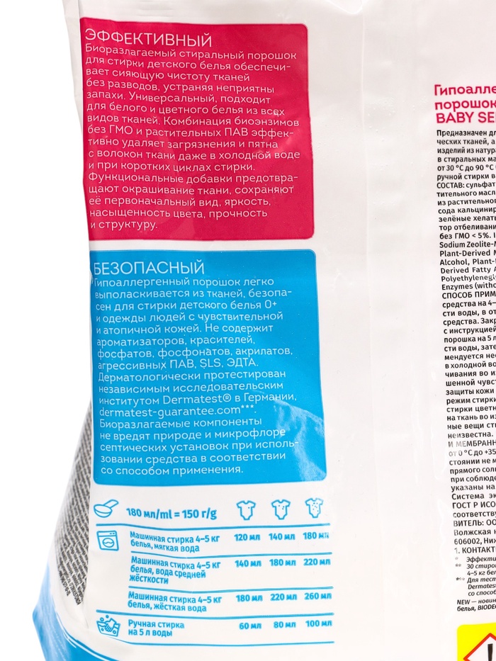 Стиральный порошок Synergetic, автомат, гипоаллергенный, 50 шт