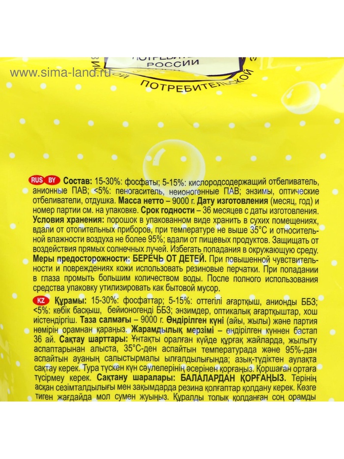 | Вес, г/Объём, мл | 9000 |