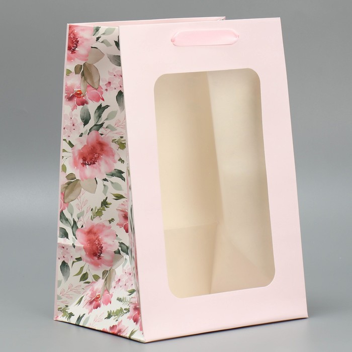 Сумка для цветов «Красная», влагостойкая, 12 x 12 - 8 x 8 - 12,5 см