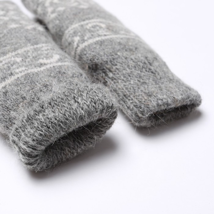 Варежки женские шерстяные, цвет серый/белый, размер 20-22