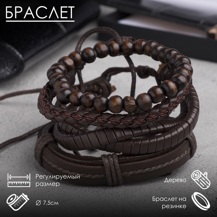 Браслет кожа "Парун", цвет коричневый, d=7,5 см