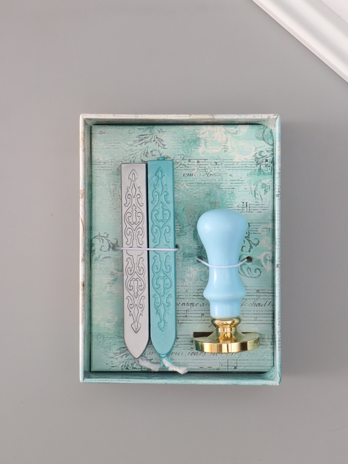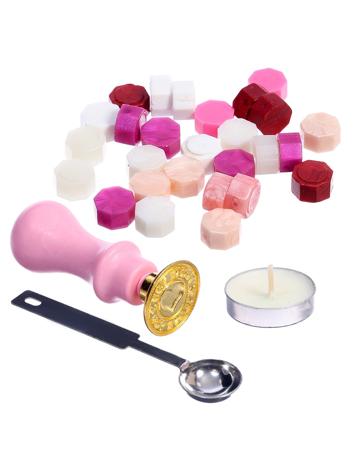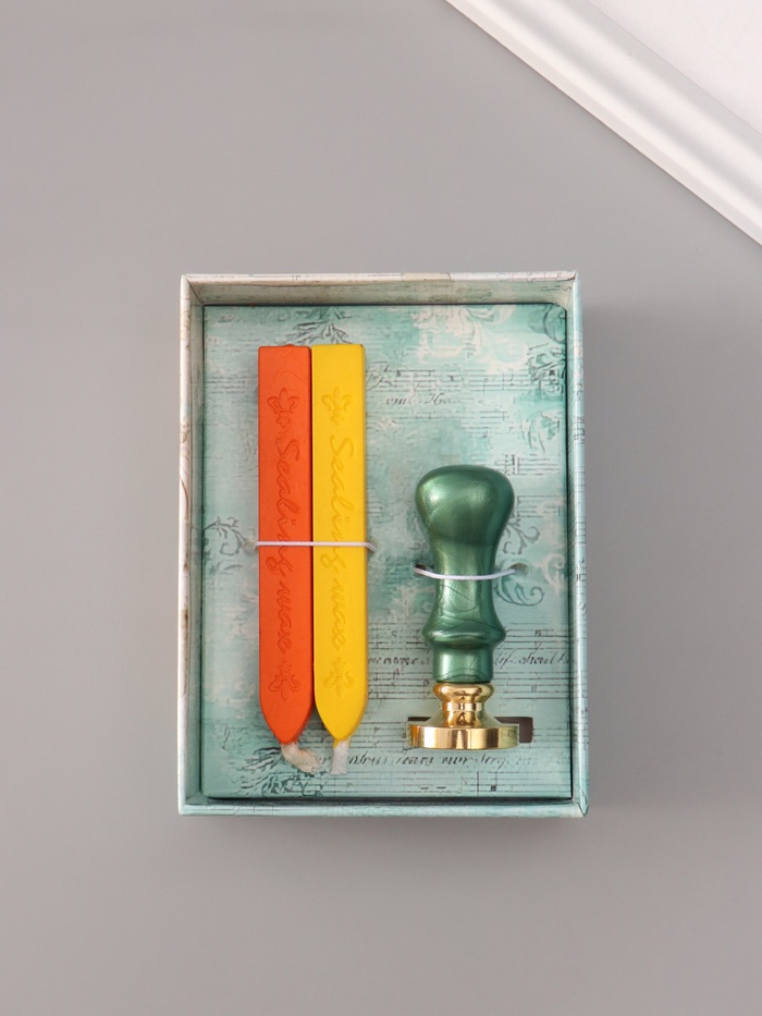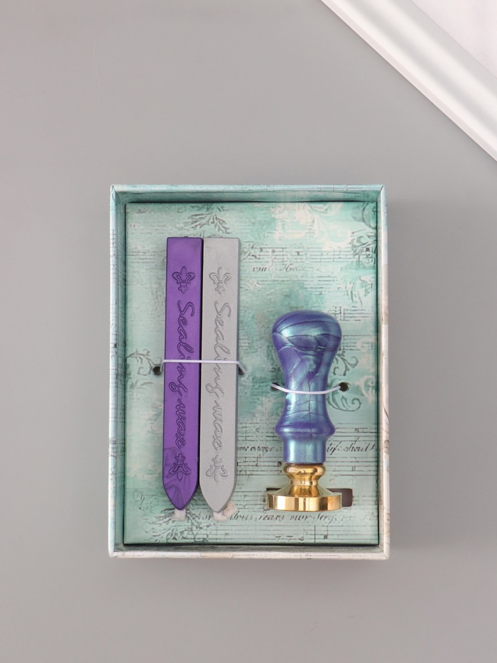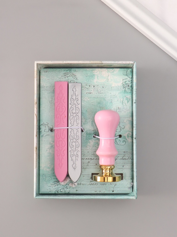 Сургучный набор "Крупная роза" печать, ручка, ложка, воск - 3 цвета, свеча 3,5х11х23 см