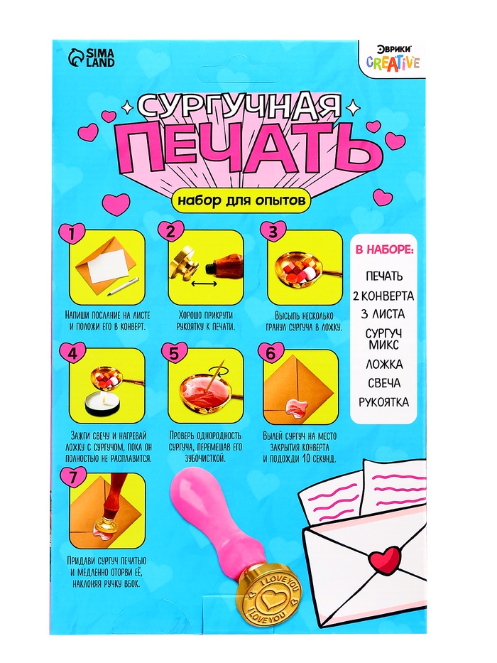 Набор для опытов для детей «Сургучная печать. Я тебя люблю», штамп, сургуч, конверт для письма