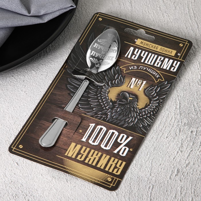 Ложка подарочная на открытке "100% мужику", 3 х 14 см