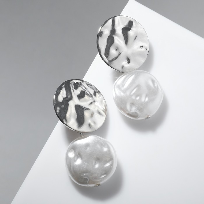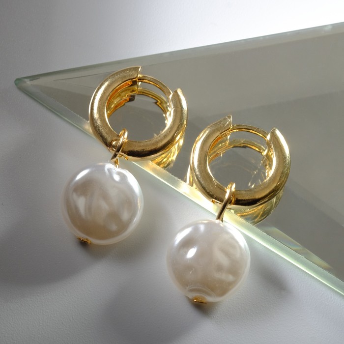 Серьги со съёмным элементом "Трансформер" жемчужный диск, цвет белый в золоте