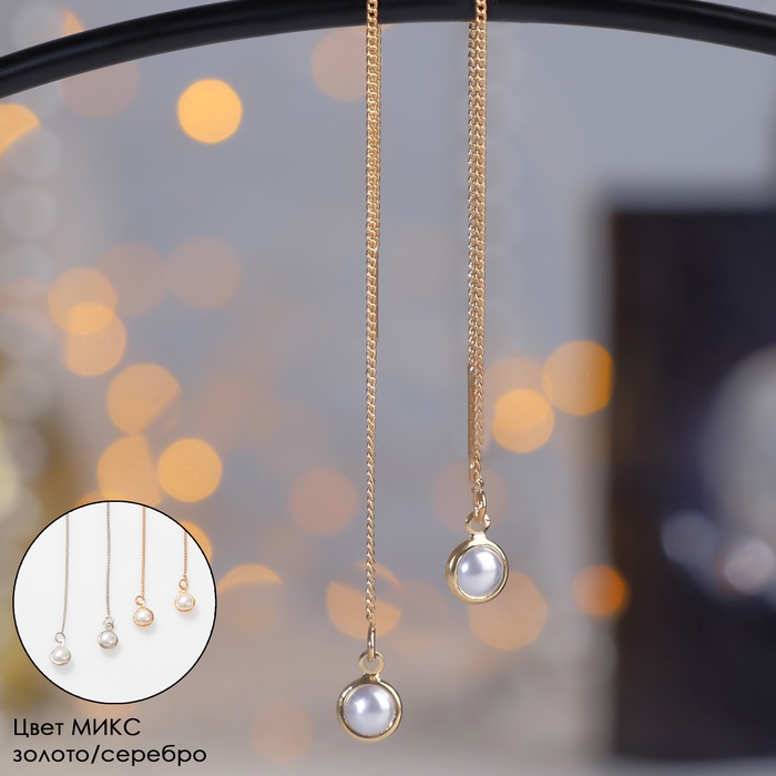 Серьги со съёмным элементом "Трансформер" жемчужина в нитях, цвет белый в золоте