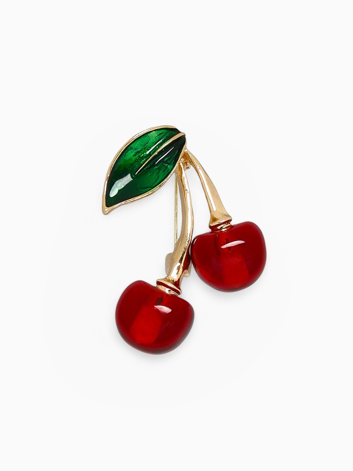 Брошь "8 марта" вишенка с листочком, цвет бордово-зелёный в золоте