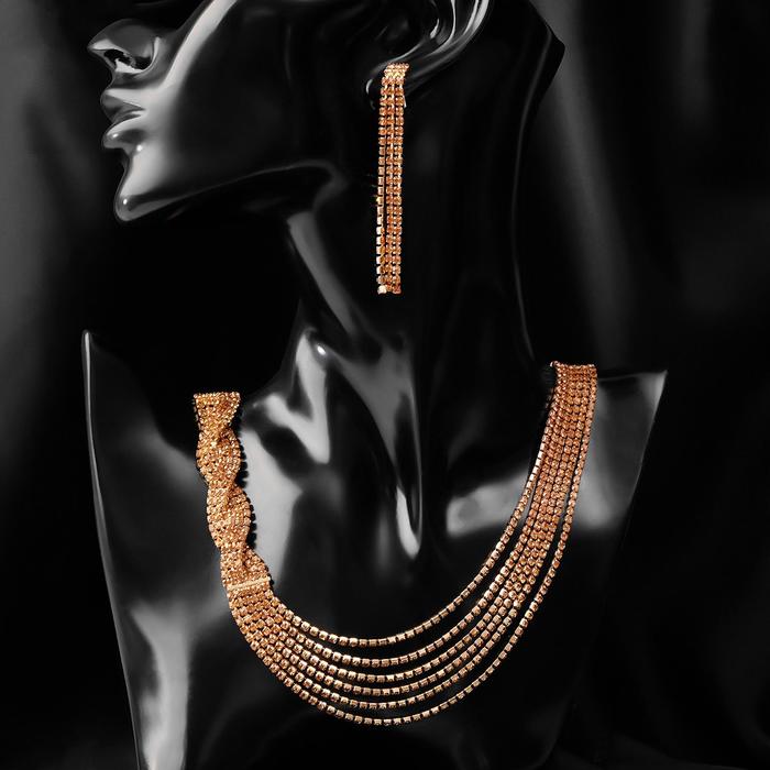 Набор 2 предмета: серьги, колье "Лёд" косичка, цвет золото, 80см