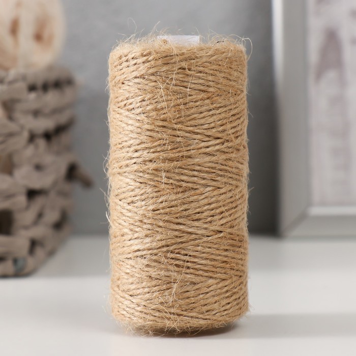 Шпагат джутовый, скрученный d=1,5 мм, 100 м «Шнурком», цвет натуральный
