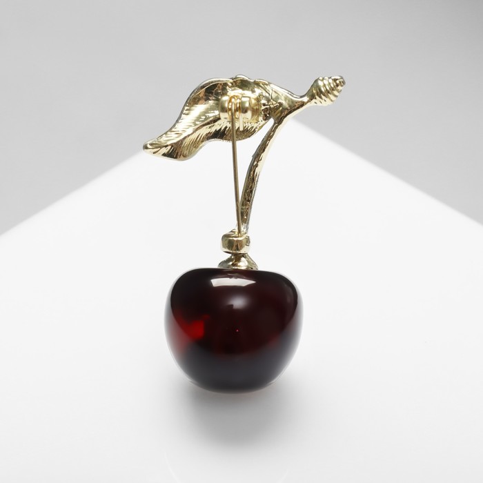 Брошь "8 марта" вишенка с листочком, цвет бордово-зелёный в золоте