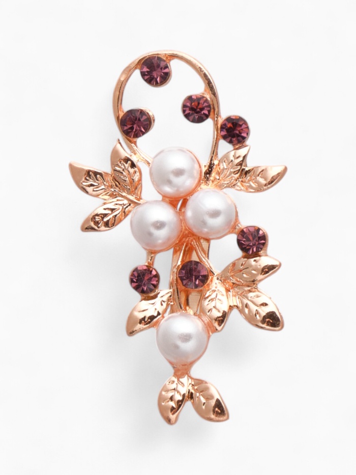 Брошь «Жемчужная ветвь» с росой, цвет бело-фиолетовый в розовом золоте