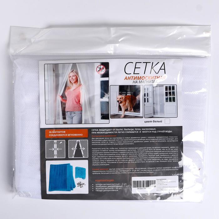 Сетка антимоскитная для дверей, 100×210 см, на магнитах, белая